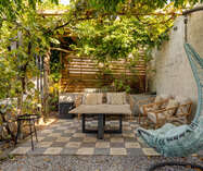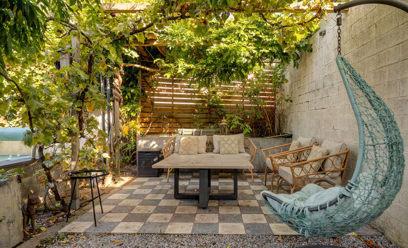 De volledig omheinde en aangelegde tuin vormt een echt buitenparadijs met een vijgenboom, dakplatanen en verschillende terrassen, waaronder een sfeervolle zithoek onder de blauwe regen. Bovendien is er een plungepool van 3 x 3 m aanwezig.