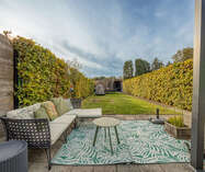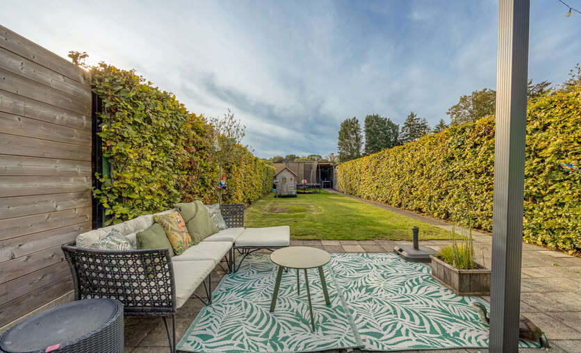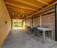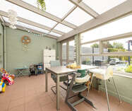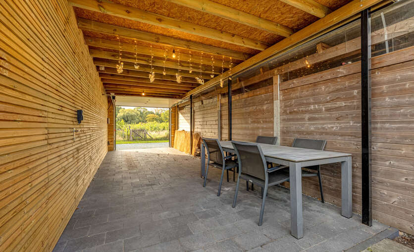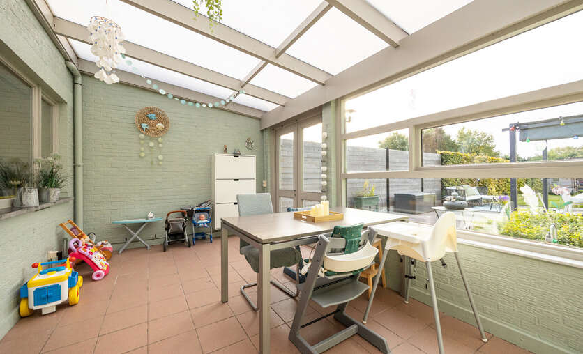 Veranda (16,5 m²) met dubbele openslaande deur naar het terras (56m²) en de tuin.