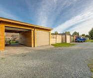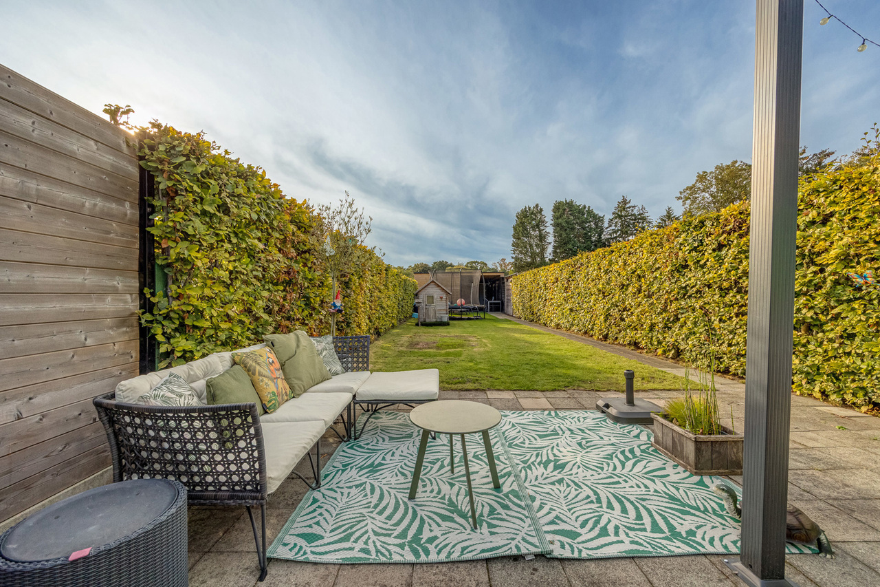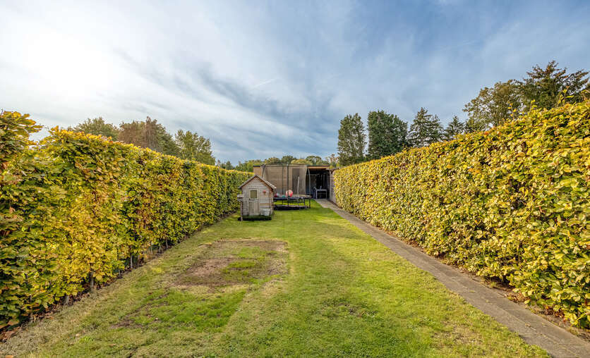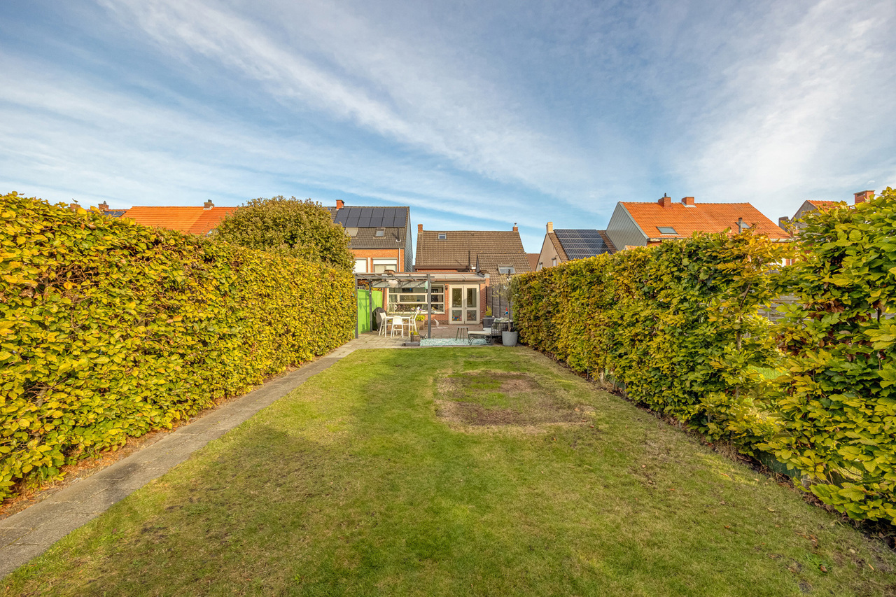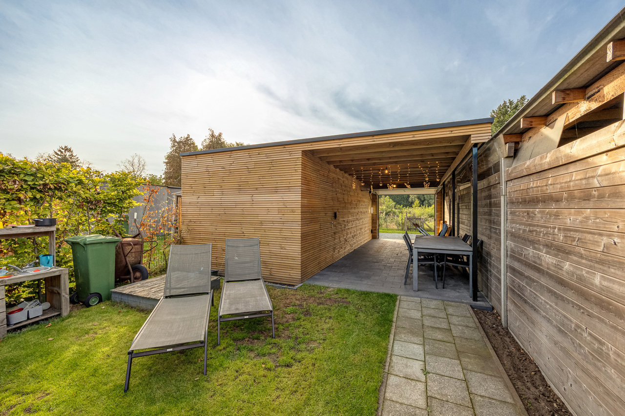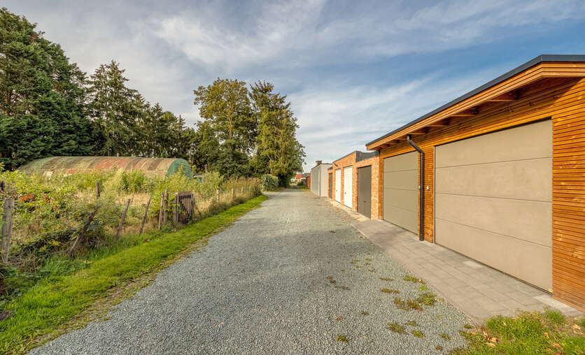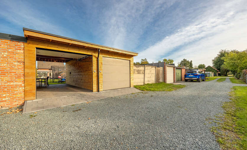 Achteraan de woning geniet u van een ZZO-georiënteerde tuin met achterin een aparte garage en carport, beide voorzien van een elektrische poort, bereikbaar via een servitudeweg.