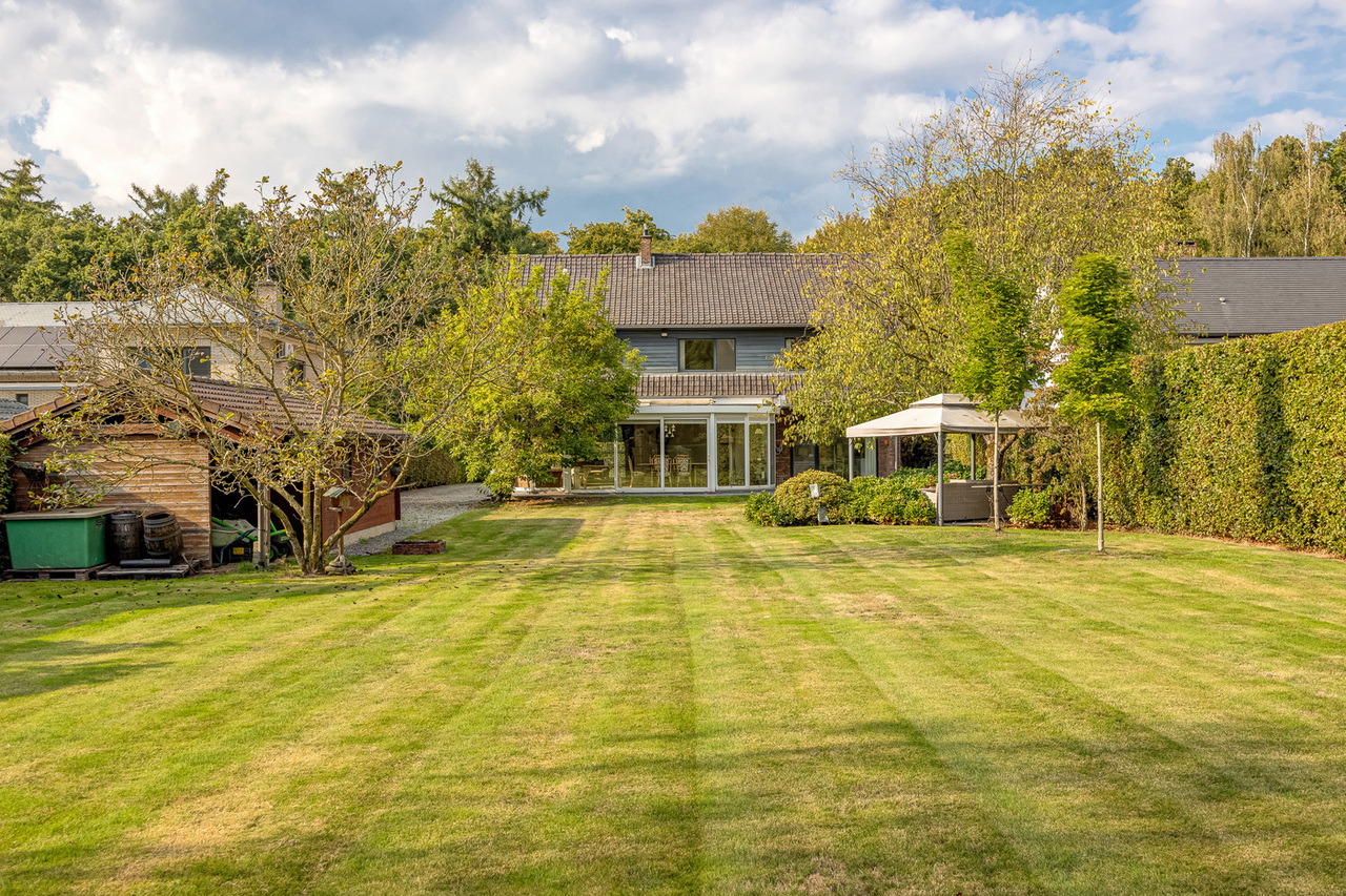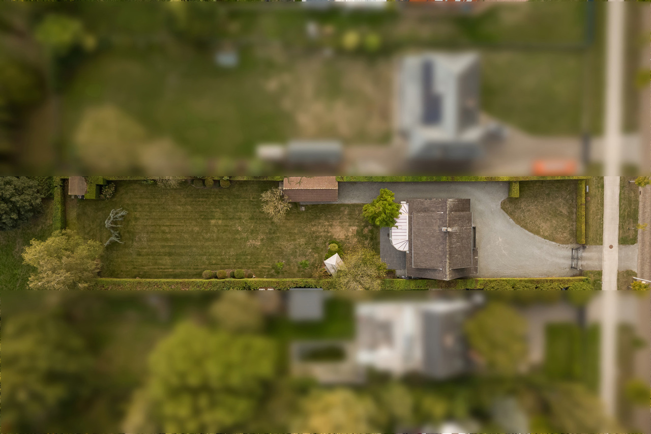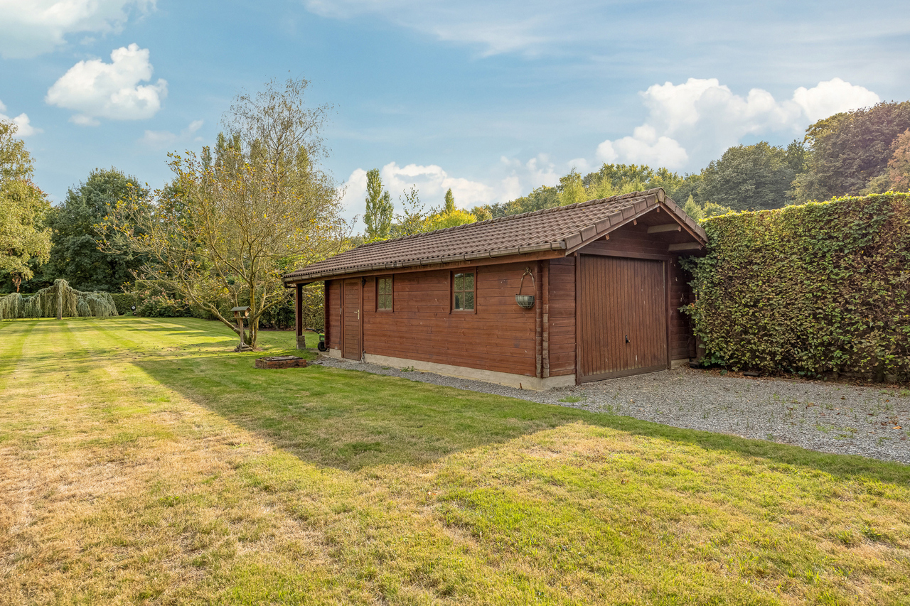 Een ruime oprit voor meerdere wagens, een apart houten garagegebouw (23m²) en een fraai aangelegde omheinde ZUID-tuin met terras.