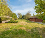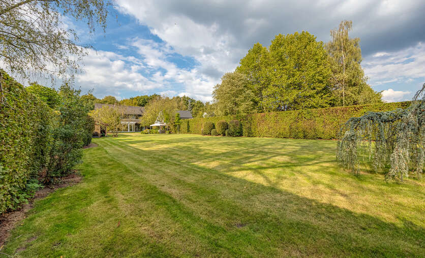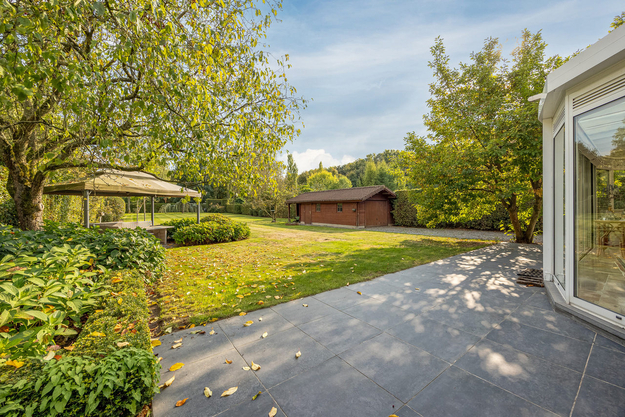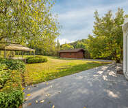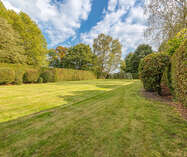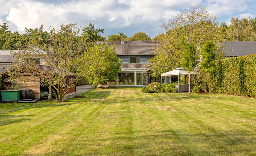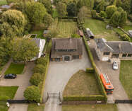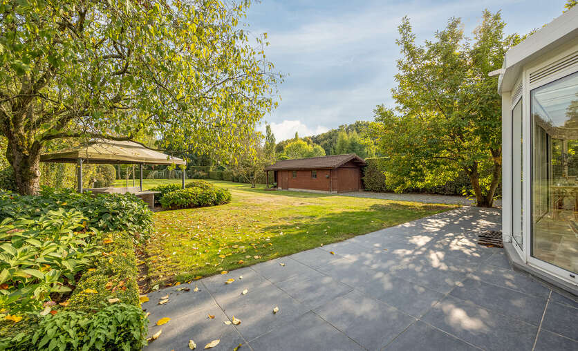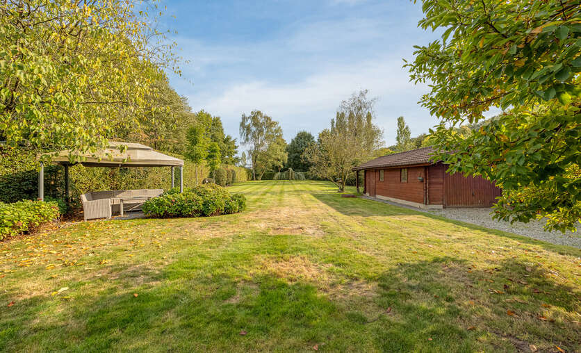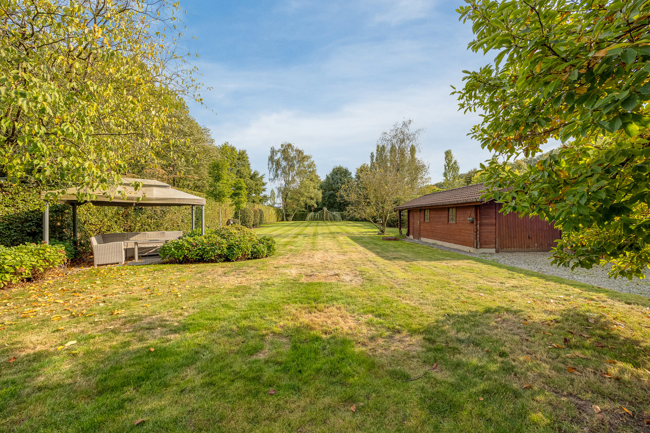 Een ruime oprit voor meerdere wagens, een apart houten garagegebouw (23m²) en een fraai aangelegde omheinde ZUID-tuin met terras.