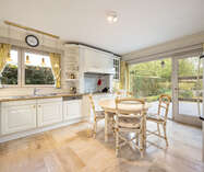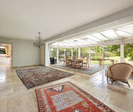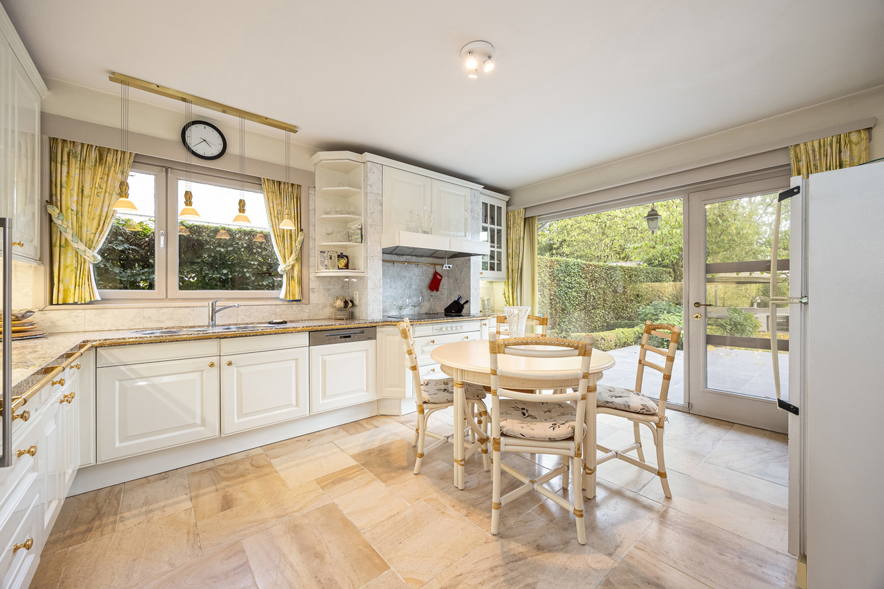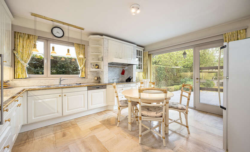 Siematic leefkeuken (inductiekookplaat, dampkap, dubbele spoelbak, vaatwasser, oven en microgolfoven) met toegang tot het terras.