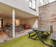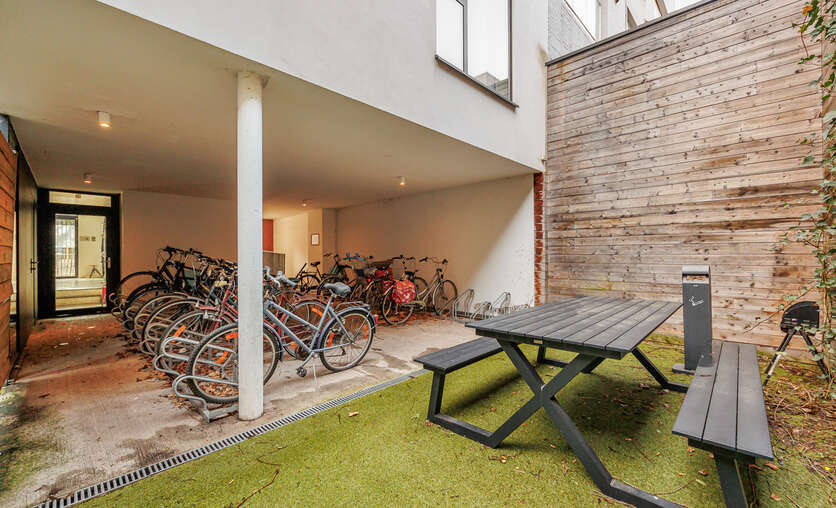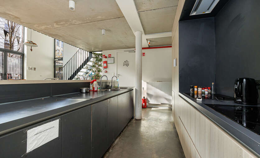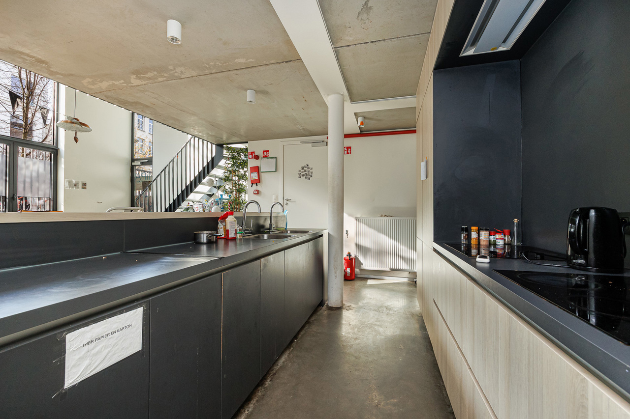 Het studentenhuis biedt bovendien uitstekende gemeenschappelijke faciliteiten: een ruime, volledig uitgeruste keuken met bar en tv-hoek, een gezellige duplex zithoek en een aangenaam terras. Fietsen kunnen veilig gestald worden in de afgesloten fietsenberging.