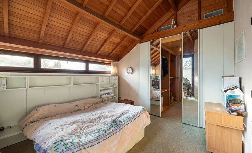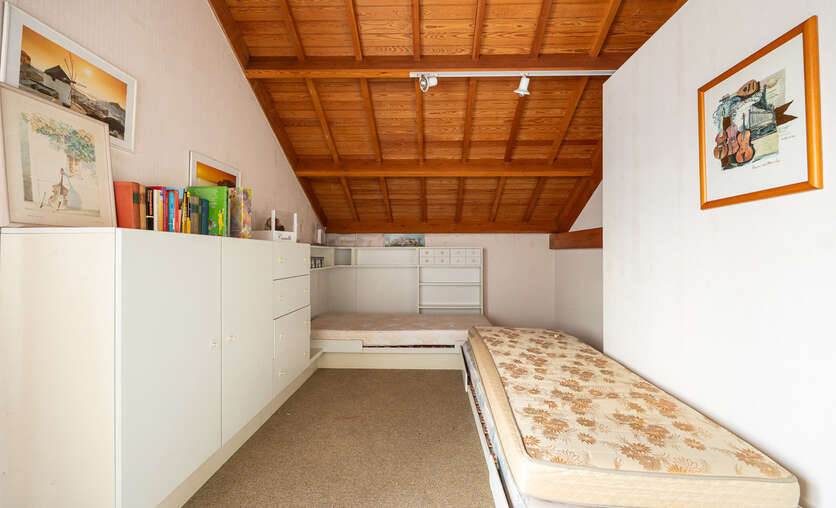 Op de verdieping bevindt zich de nachthal met vasttapijt, die toegang geeft tot vier slaapkamers, een bureel en de badkamer.
