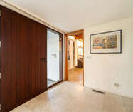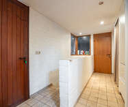 Bij het betreden van de woning kom je de inkomhal met bourgondische natuursteen, voorzien van een vestiaire en een aansluitend gastentoilet met lavabo en douche.