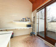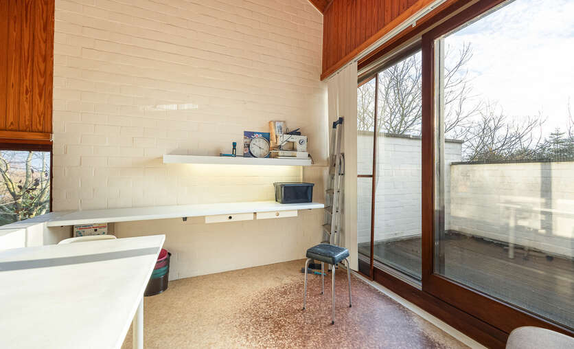 Het bureel (8m²) is afgewerkt met novilon en beschikt over een schuifdeur naar een terras (7m²).
