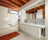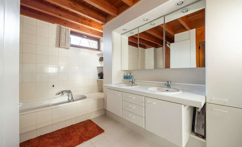 De hoofdslaapkamer (13m²) heeft een aansluitende dressing en toegang tot het terras. Via de dressing bereik je de badkamer, die uitgerust is met een ligbad, dubbele lavabo in meubel, toilet, bidet en handdoekdroger.