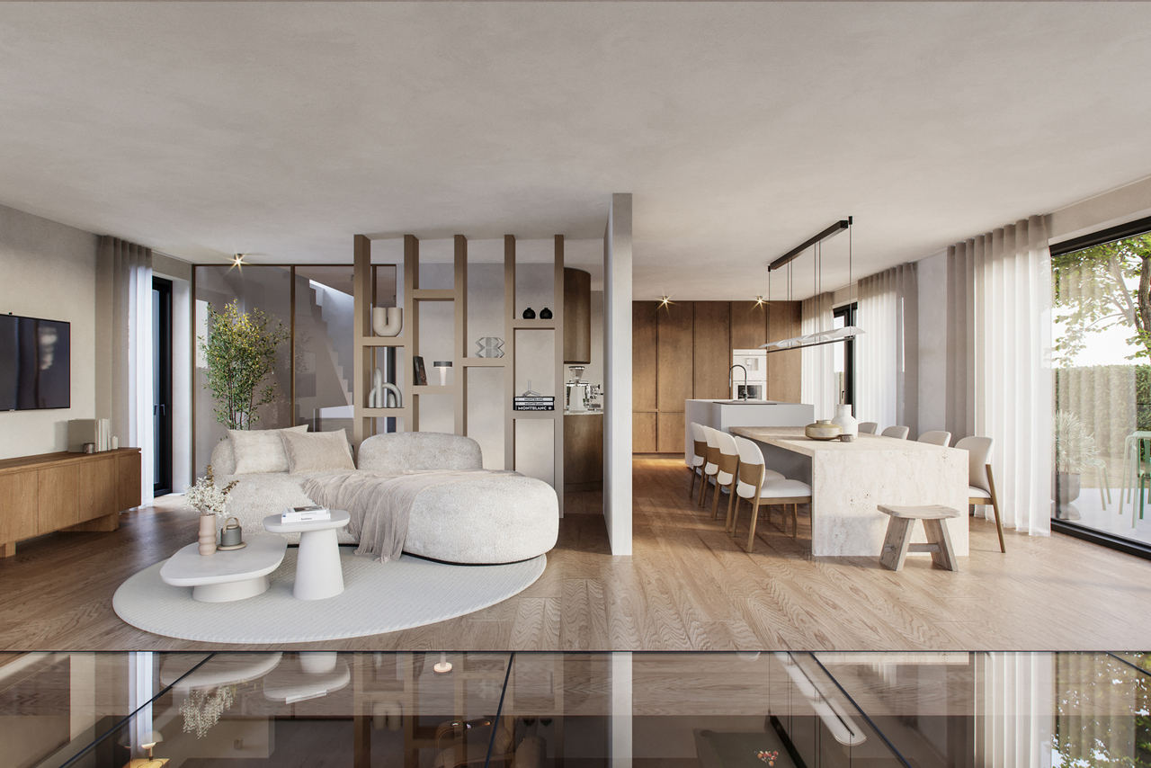 Nieuw te bouwen villa op 2.099m² met een perceelbreedte van 39,50m en een bewoonbare oppervlakte van 180m² + 90m² kelder/polyvalente ruimte. De woning wordt sleutel op de deur afgewerkt. Inspraak in materialen is mogelijk. Ruime budgetten voorzien voor keuken en badkamer.